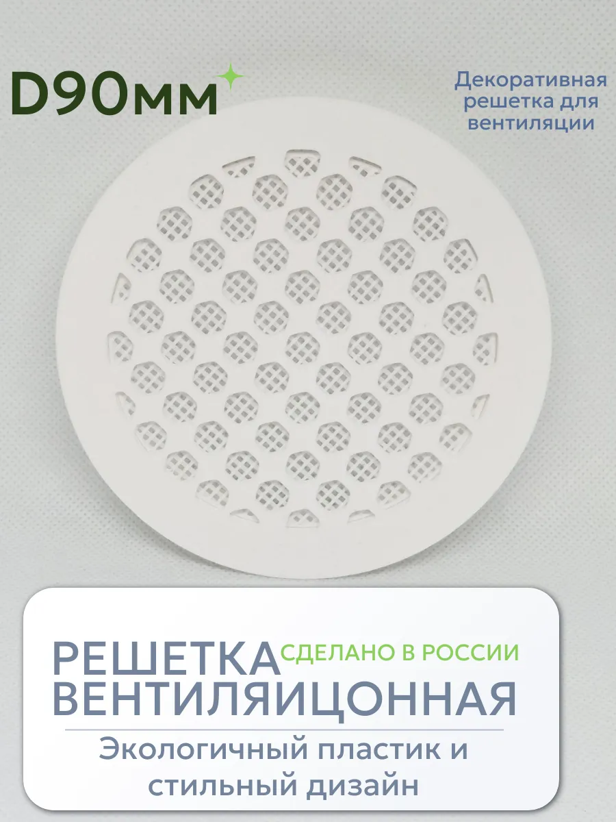 Решетка вентиляционная(с москитной сеткой), пластиковая, цвет белый (D90мм) - 1 шт.