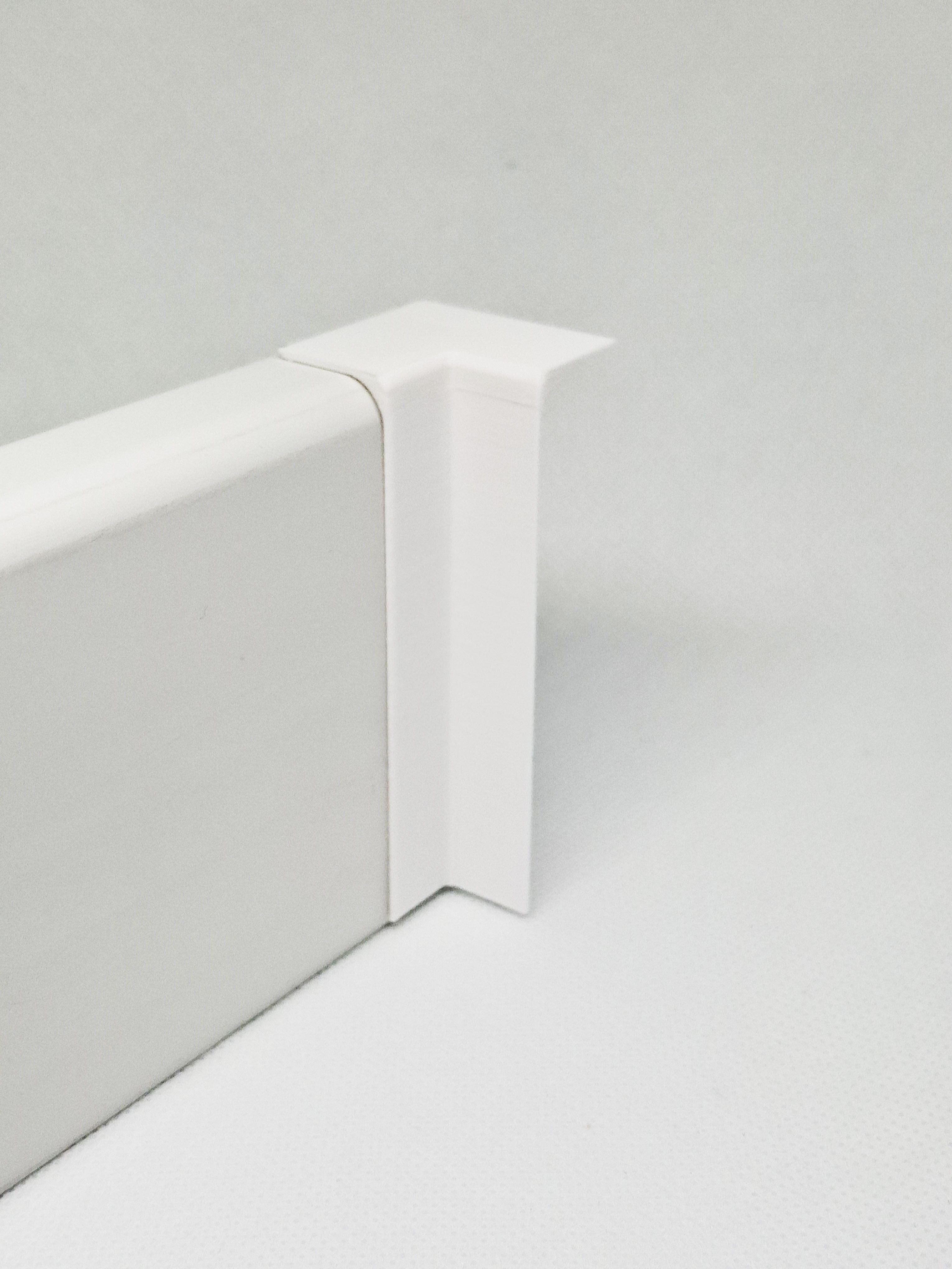 В комплекте: 4 белоснежных уголка для плинтуса с прямым профилем 70*16 мм