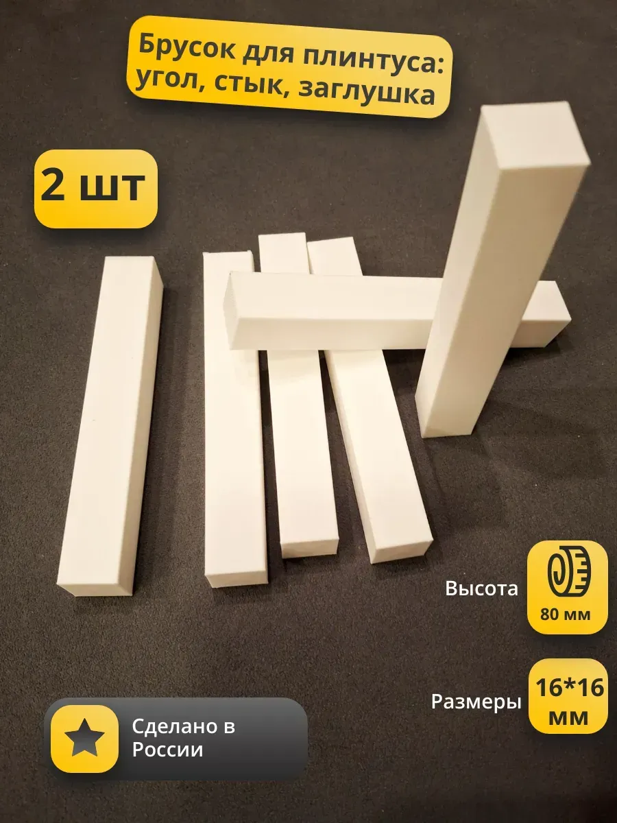 Эти элементы имеют универсальный размер 80x16x16 мм, что позволяет использовать их с плинтусами разных размеров.
