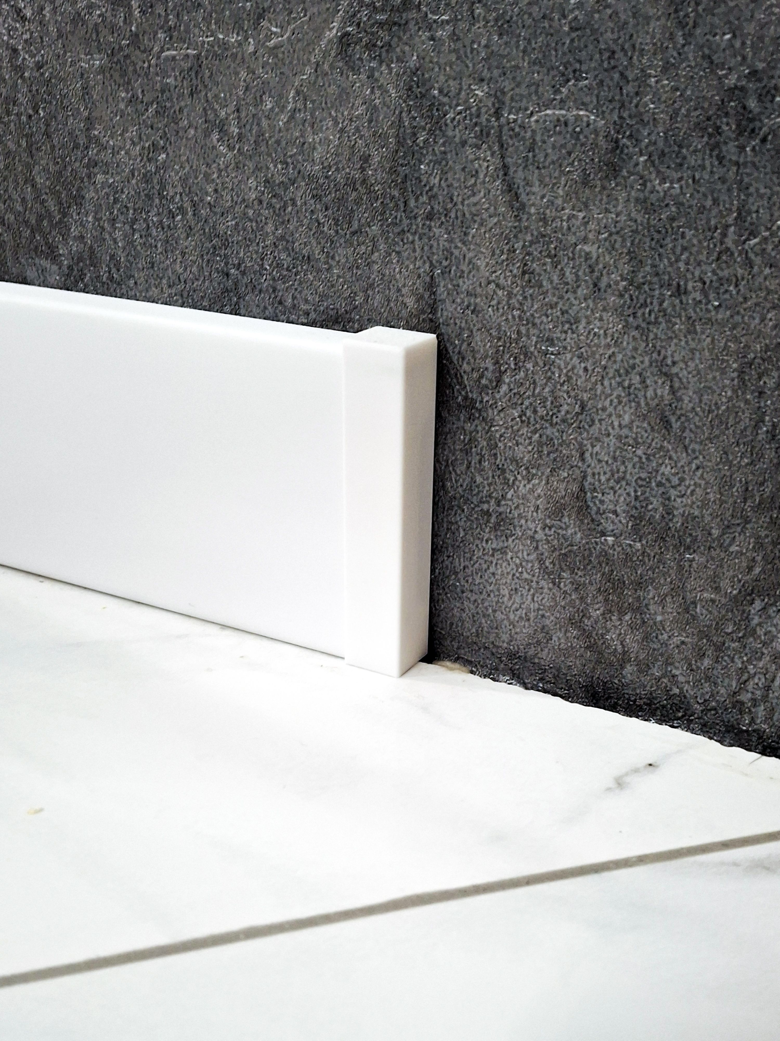 Заглушка сделана из белоснежного пластика, подходит для плинтусов из МДФ, экополимера, полистирола, а так же для плинтусов из любых других материлов имеющий прямоугольный профиль.